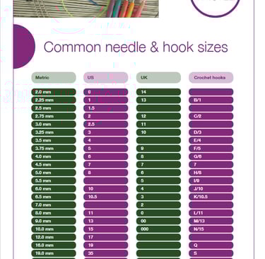 Needle sizing describes the thickness or circumference of knitting needles, which range from very thin to really quite chunky.
