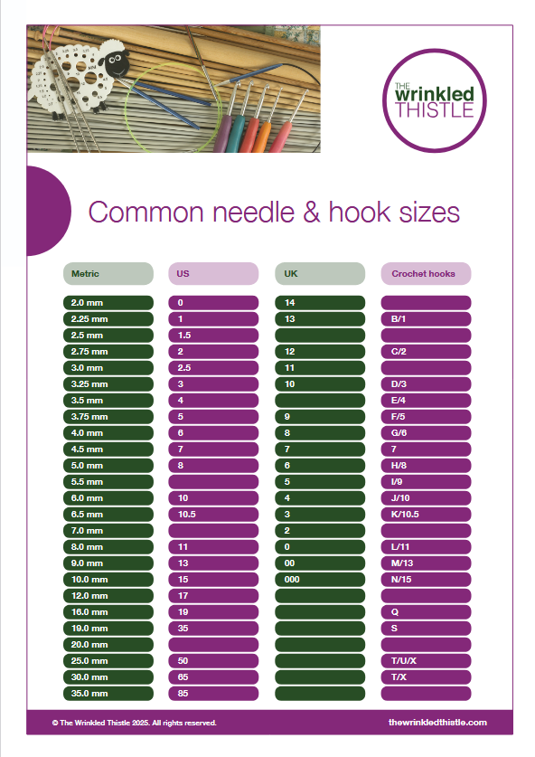 From there, the numbers increase in increments of either 0.25mm or 0.5mm, reaching up to around 25mm for extra thick needles meant for super chunky yarns.
