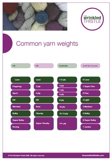 Join the newsletter and get this handy PDF guide, which provides a comparison of yarn weights in different parts of the world.